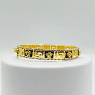 Pulsera Rígida Medusa Onix Greca 18K