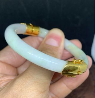 Pulsera Jadeíta Natural Tipo A Oro21,6k,Diamantes