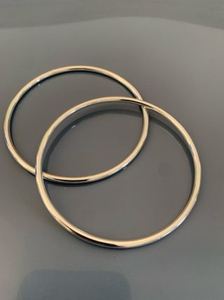 Elegantes pulseras con un diseño doble. Tienen el sello de plata, pero yo creo que son de bisutería, de ahí su precio. - Acabado brillante. - Estilo minimalista.