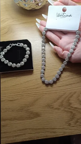 Conjunto de bisutería de alta calidad. Pedrería con mucho brillo - Gargantilla con diseño moderno y muy elegante - Pulsera a juego. - Cierre de seguridad. Se venden juntas a 40€ y por separado, la pulsera 20 y la gargantilla 25€