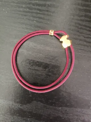 Pulsera TOUS Sweet Dolls elástica de color burdeos de 17cm con motivo con baño de oro 18 kt sobre plata. Técnica de producción: Fundición. Tamaño oso: 11 x 8 mm. Pieza fabricada con plata de primera ley con baño de oro de 18 a 23 kt y 3 micras de espesor. Esta calidad garantiza una mayor durabilidad de la joya.