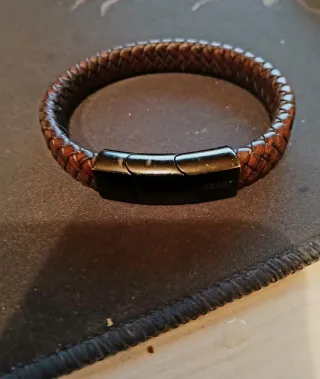 Elegante pulsera de cuero trenzado con un moderno cierre magnético. - Material: Cuero - Cierre: Magnético