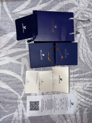 Elegante brazalete de la marca Swarovski. - Diseño abierto. - Adornado con cristales. - Incluye certificado de autenticidad y caja.