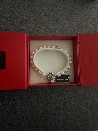 Elegante pulsera de perlas cultivadas de agua dulce con un diseño delicado. - Perlas de forma irregular. - Cierre de plata de ley. - Detalle de charm. - Incluye certificado THE LUXURY SHOP.