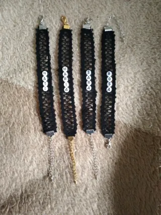 Conjunto de pulseras y collares hechos a mano. - Diseños variados y coloridos. - Perfectos para añadir un toque personal a tu estilo.,se pueden hacer con nombres bajo pedido,con adornos y con los colores que se quiera,pulseras azules,con nombre del celta,o lo que se quiera,1 euro unidad ,se pueden hacer más gordas o más finas