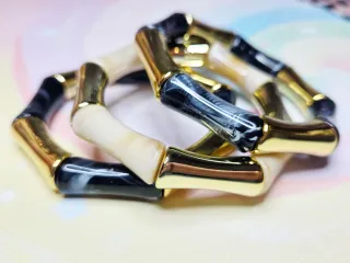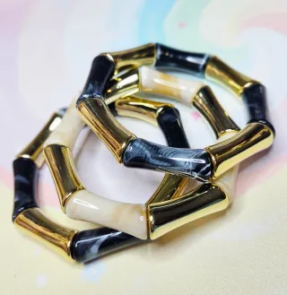 Set de pulseras con diseño de bambú y detalles dorados. - Diseño segmentado tipo bambú. - Acabado metálico dorado en las uniones.