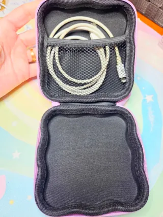Conjunto de accesorios para viajes. - Estuche lila con forma de nube y corazón. - Llavero de perlas blancas. - Porta pasaporte y etiqueta de equipaje en tono rosa. - Etiqueta de equipaje