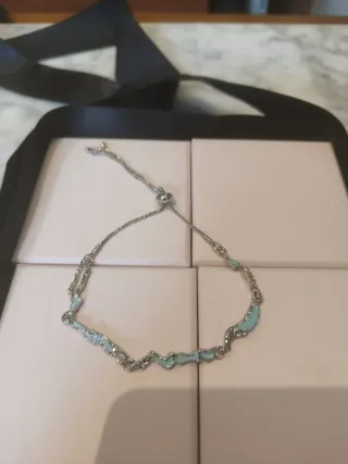 Elegante pulsera con cordón ajustable. - Diseño con detalles en esmalte azul. - Cadena de plata. - Cierre de cordón para un ajuste perfecto.