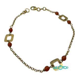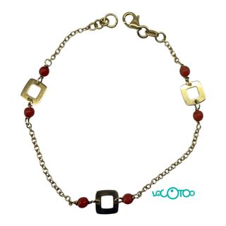 Pulsera de oro 18 k con corales rojos de 3,5 mm ( 6 Uds ) ,malla forsat de 1,8 mm y motivos cuadrados de 8x8mm , cierre de mosquetón , largo pulsera 19 cm . Peso 3,70 grs [ ] 📍 Nos puedes encontrar en la calle Urzaiz 90 de Lunes a Sábado de 10 a 20:30. - [ ] ☎️ sin o lo prefieres puedes llamarnos al 986494936 - [ ] ✨3 años de garantía en todos nuestros productos. - [ ] 🚚 Hacemos envíos a través de nuestra página web “Locotoo.com” y en Wallapop. - [ ] 💻 Los productos sólo incluyen los accesorios que se ven en las fotografías E0463002AR