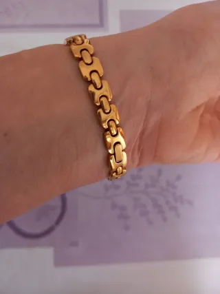 Elegante conjunto de reloj y pulsera. No lleva pila. - Diseño de eslabones. - Acabado metálico.