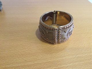 Elegante pulsera chapada en oro de joyería local con un diseño único.