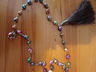 Conjunto de collares de bisutería con diferentes diseños y materiales. Collares con cuentas de madera y piedra. Diseños variados con detalles metálicos. Cuentas de turquesa y tonos tierra. Los que están en su plástico llevan el juego de pendientes. También alguna pulsera en madera y otras de piedra natural howlita. Hay 51 pieza en total y todos nuevos y sin uso. Ideal para tiendas. El precio es por el lote entero. Precio negociable.