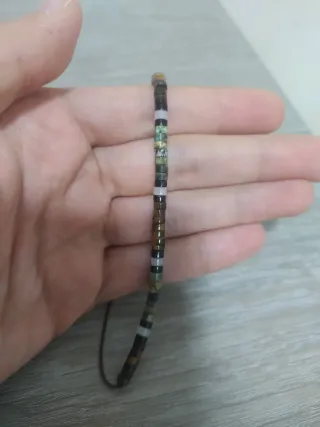 Preciosa pulsera unisex hecha a mano con cuentas de colores marrón y multicolor. Lleva hilo en vez de goma elástica. El hilo es más resistente a roturas. Se puede ver sin compromiso. En Villlena - Diseño único y elegante. - Cierre ajustable con cordón. - Ideal para cualquier ocasión.