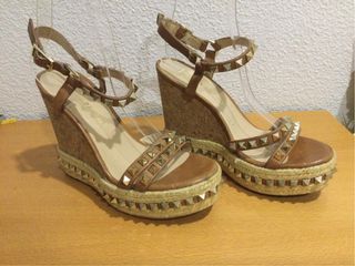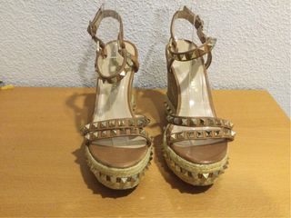 Sandalias cuña tachuelas doradas marrón