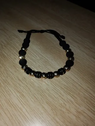 Pulsera artesanal flor negra detalles dorados
