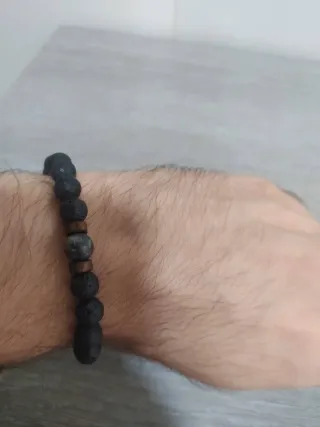 Pulsera elástica unisex con cuentas de piedra natural. Combina tonos oscuros y terrosos para un estilo único. 19cm de diámetro. Se puede ver sin compromiso. En Villena