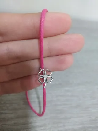 Bonita pulsera con cordón rosa y un charm de trébol de cuatro hojas. - Diseño de trébol. - Cierre ajustable. Se puede ver sin compromiso. En Villena