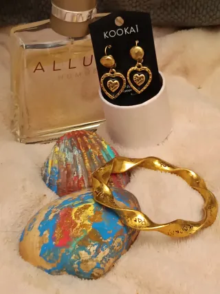 Conjunto de bisutería de la marca Kookai. - Pendientes con diseño de corazón. - Pulsera con diseño retorcido.