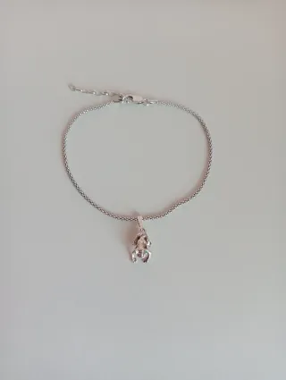 Tobillera de plata 925 tipo cordón con colgante de ranita (la rana tiene la zona de la boca articulada) La tobillera abierta mide 25 cm. Sin estrenar, entrego en bolsita de organza.