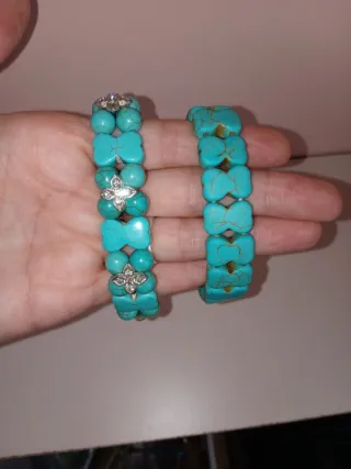 Lote 2 pulseras elásticas turquesa una de acabado brillo con pedrería y la otra de acabado mate.Sin estrenar, las 2 pulseras por 12€.Entrego en bolsita de organza.