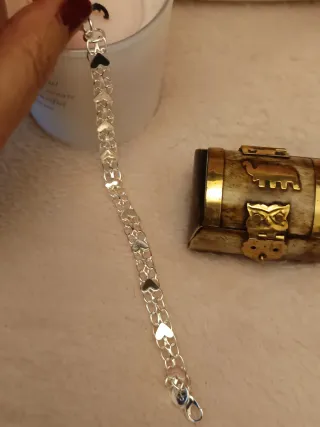 Elegante pulsera de plata con un diseño de corazones intercalados. Un accesorio delicado y brillante. - Material: Plata. - Diseño: Corazones. - Cierre de mosquetón.