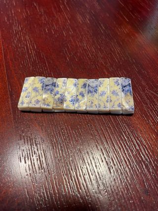 Bonita pulsera elástica elaborada con piezas de nácar. - Diseño floral en tonos azules. - Piezas rectangulares unidas. - Estilo único y llamativo. Precio final sin descuentos