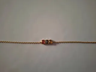 Elegante pulsera con cadena dorada y tres piedras centrales de diferentes colores. - Cierre de mosquetón. - Cadena ajustable.