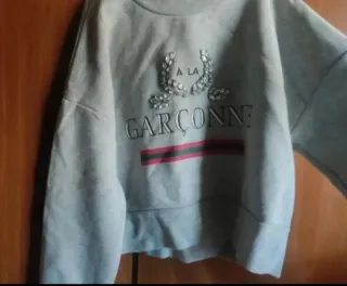 Sudadera con un diseño moderno y llamativo. - Detalle de logo À la Garçonne bordado. - Banda decorativa con rayas rojas y negras. - Cuello redondo y mangas largas.