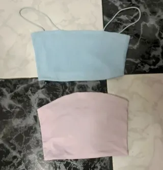 Tops de color lila y azul , ideales para cualquier ocasión. - Diseño sin tirantes. - Tejido suave y cómodo.