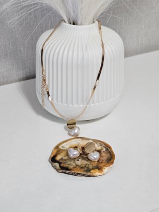 Elegante conjunto de collar y pendientes con diseño de corazón y piedra blanca. - Collar con cadena dorada. - Pendientes a juego con forma de corazón.