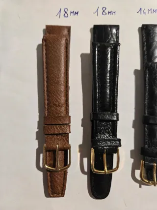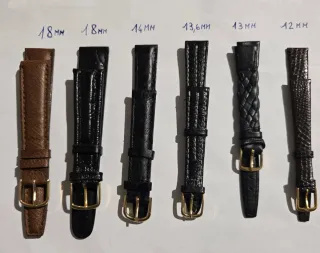 Lote de correas de reloj de diferentes tamaños y acabados. - Correa marrón de 18mm. - Correa negra de 18mm. - Correa negra de 14mm. - Correa negra de 13,6mm. - Correa negra de 13mm. - Correa marrón de 12mm.
