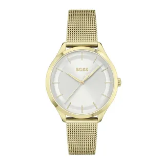 Hugo Boss Pura Ld White Steel 36 Q3d - Esfera blanca. - Correa de malla metálica dorada. - Caja dorada.