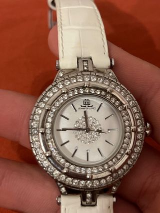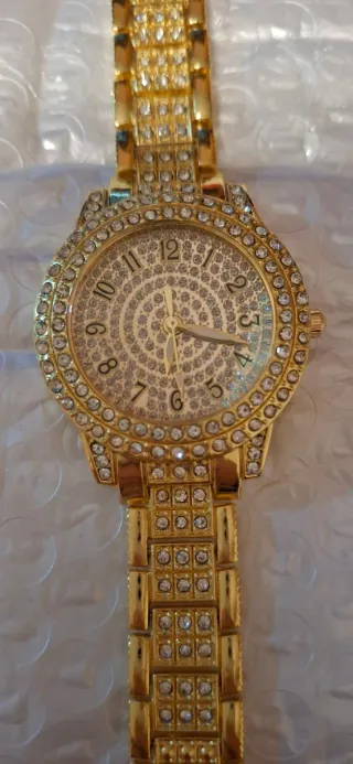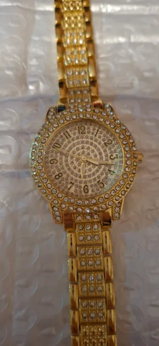 Reloj precioso y llamativo con diamantes incrustados, perfecto para presumir en la mano. La correa es antigua y el reloj no funciona, solo para lucirlo como accesorio de moda. Ideal si quieres brillar y destacar.