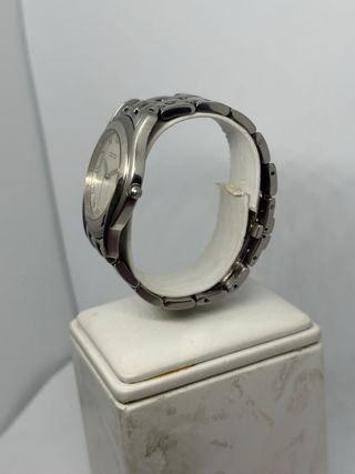 Reloj de pulsera con diseño moderno y elegante. Nuevo, sin usar, en perfecto estado. Caja de 38 mm, esfera negra y correa de acero con eslabones ajustables. Movimiento de cuarzo, funciona perfectamente. Cristal resistente y resistente al agua para uso diario. Ideal para vestir o uso diario.