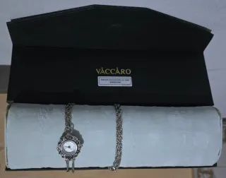 Elegante reloj de la marca VACCARO, adornado con cristales Swarovski. - Diseño con cadena plateada. - Esfera blanca detallada.