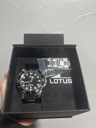 Elegante reloj de la marca Lotus con detalles plateados y caja negra. Perfecto para complementar tu estilo. - Esfera negra con marcadores plateados. -SE HA USADO UNA VEZ SOLO -SE HA PERDIDO EL TICKET DE COMPRA PORQUE ES DE HACE TIEMPO LA COMPRA (precio negociable)