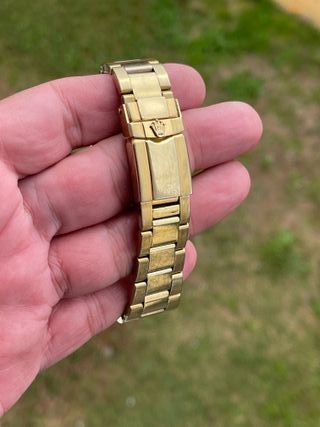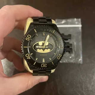 Reloj de pulsera con diseño deportivo y elegante. - Esfera negra con detalles en dorado. - Bisel giratorio unidireccional. - Correa de acero inoxidable. - Resistencia al agua 100m.cristal de zafiro corona roscada ect usado una vez regalo de navidad