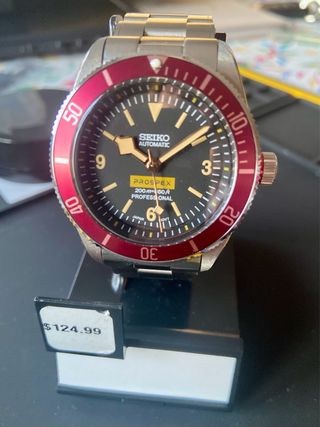 Reloj automático Seiko Prospex PADI con esfera azul y bisel Pepsi. - Bisel giratorio unidireccional. - Correa de acero inoxidable. -200 mts certificado PADI -Corona roscada -En excelentes condiciones estéticas y mecánicas Un clásico que nunca va a pasar de moda *Acepto cambios por relojes de mismo valor* Precio.- 325€ No MAREANTES