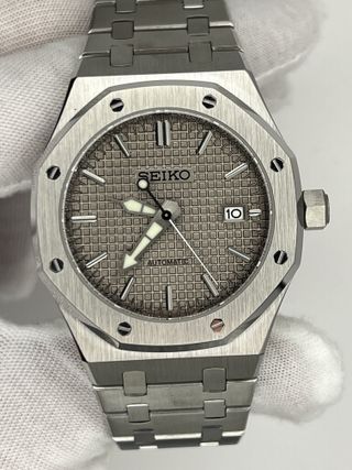 Reloj de hombre Seiko mod, estilo Royal OAK de color blanco, de 42 mm. Piezas de excelente calidad, con buen peso y sin ruido metálico. Calidad sorprendente. ✅ Garantía 1 año ✅ Mecanismo Automático Original Seiko ✅ Resistente al Agua ✅ Agujas con Luminiscencia (visible en oscuridad) ✅ Vidrio de Zafiro a prueba de Rayadas Correa de Acero inoxidable muy sencilla de ajustar! Posibilidad de modificarlo a tu gusto. Más modelos en mi perfil! 🚚 Se envía en menos de 24h. También se puede recoger en mano en Sant Cugat del Vallès.
