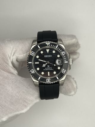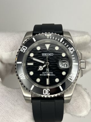 Reloj de hombre Seiko mod, estilo Submariner de color negro, de 40 mm. Piezas de excelente calidad, con buen peso y sin ruido metálico. Calidad sorprendente. ✅ Garantía 1 año ✅ Mecanismo Automático Original Seiko ✅ Resistente al Agua ✅ Dial y Agujas con Luminiscencia (visible en oscuridad) ✅ Vidrio de Zafiro a prueba de Rayadas Correa de caucho negra con cierre de acero inoxidable. Es muy sencilla de ajustar! Posibilidad de modificarlo a tu gusto. Más modelos en mi perfil! 🚚 Se envía en menos de 24h. También se puede recoger en mano en Sant Cugat del Vallès.