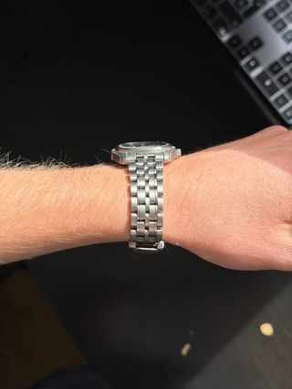 Seiko con estética inspirada en los Seamaster clásicos estilo James Bond, elegante y deportivo a la vez. Ideal para quien busca un reloj con gran presencia y un movimiento fiable. Características • Diámetro 40 mm • Esfera negra • Bisel unidireccional con detalles en cobre • Correa de malla de acero 904 estilo milanesa • Cristal de zafiro resistente a arañazos • Movimiento automático Seiko 4R35B (equivalente NH35) • Manecillas con lumen para excelente visibilidad Reloj muy cómodo, preciso y con una estética brutal. Nuevo a estrenar. Envío rápido y seguro o entrega en mano.