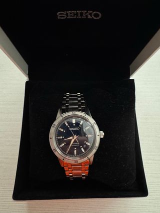 Vendo reloj automático Seiko 5 sports Field automatic modelo SRPG39K1. Movimiento automático 4R36 de Seiko Water resistant 100 metros Cristal Hardlex por delante y por detrás Caja de acero inoxidable. Un solo uso y guardado en caja relojera