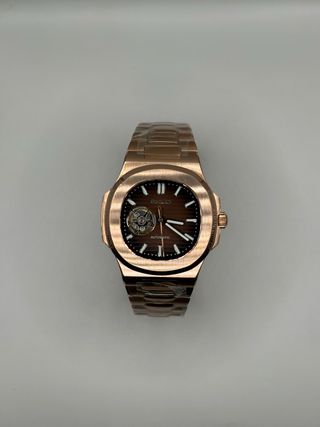 Reloj sin estrenar, con un diseño elegante inspirado en los modelos clásicos de alta relojería. Ideal tanto para uso diario como para ocasiones especiales. Movimiento automático Seiko NH38 (fiable y reconocido) Esfera marrón con acabado elegante. Caja y brazalete en tono oro rosa. Excelente presencia en muñeca. Funciona perfectamente Un reloj que combina estética premium y mecánica japonesa, ofreciendo una gran relación calidad-precio. Estado: nuevo / sin estrenar Precio: 199€