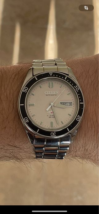 Reloj Citizen Tsuyosa referencia: NJ0150-81L Completamente nuevo a estrenar, 100% original, con precinto y etiqueta. • Material brazalete: Acero inoxidable • Diámetro de la caja: 40 mm • Ancho de correa: 22 mm • Tipo de reloj: Movimiento automático, carga automática y remonte manual. • Cierre: Cierre desplegable con pulsadores. • Género: Hombre • Tipo de cristal: Zafiro • Material Caja: Acero inoxidable • Resistencia al agua: 5 ATM • Bisel: Pulido Precio no negociable. Precio nuevo en tienda: 299€. Realizo entrega en mano o envío fuera de Wallapop.