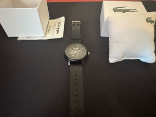 Reloj Lacoste L.12.12 Automático Esqueleto. Full Set: incluye caja original, almohadilla y ticket de El Corte Inglés que garantiza su autenticidad. Diseño exclusivo con esfera abierta y fondo de caja transparente para ver la maquinaria en funcionamiento. No necesita pilas, se carga con el movimiento. Caja de aluminio negro mate, muy ligera y resistente. Correa de piel genuina negra con textura piqué y logo grabado. Resistencia al agua 5 ATM. Muy cuidado, ideal para regalo o coleccionistas. ¡Escríbeme para más info!