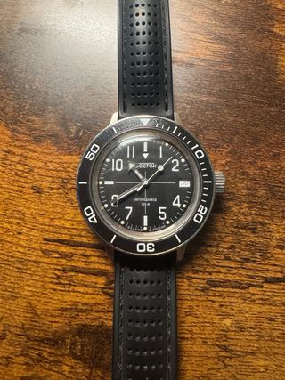 Modelo icónico de la marca rusa. El amfibia es un reloj de buceo puro, bisel bidireccional, 200m de hermeticidad con tapa y corona roscadas. Es una edición poco común pero, muy atractiva y legible. Trae el armis original y una correa de goma muy cómoda.