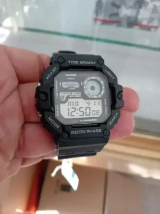 CASIO PESCA, FASES LUNARES, 3 ALARMAS, GRANDE 54MM