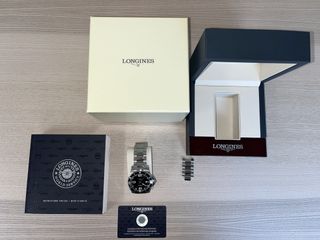 Reloj Longines Hydroconquest con caja y brazalete de acero inoxidable. Bisel giratorio unidireccional. 41mm. - Esfera de color negro. - Indicadores de hora y manecillas plateadas. - Ventana de fecha. - Cierre desplegable con doble seguro. Calibre L633.5 Comprado en marzo 2024, aún le queda garantía. Muy buen estado, revisar bien las fotos. No cambios. Abstenerse ofertas, por favor, y menos bajando 200 o 300, el precio es el que es. Gracias.