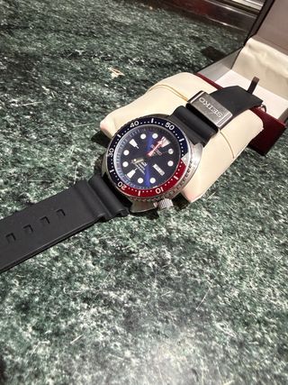 Reloj Seiko PADI edición especial con bisel Pepsi. - Esfera azul. - Bisel giratorio bidireccional. - Correa de caucho. - Cierre con hebilla. -edición deportiva y elegante a la vez