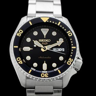Reloj Seiko 5 SRPD57K1 , completo , full set , con su brazalete en perfecto estado mas un caucho aftermarkert nuevo, calibre 4r36 , cristal hardlex con un lumen espectacular. Porfavor solo gente realmente interesada , mirar mis valoraciones. Solo se envia con pago antes por transferencia o Bizum. - Esfera negra con detalles dorados. - Bisel giratorio unidireccional. - Correa de acero inoxidable. - correa de caucho extra aftermarket - Ventana de día y fecha. Tags: swiss made made japan , Oris Orient Citizen Certina Hamilton Rado Crepas Zelos Rolex Omega Tag Heuer Breitling Longines Sinn Casio Baume Mercier Tissot